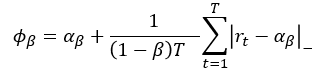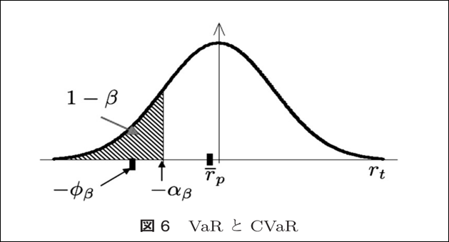 CVaRはポートフォリオ収益率の損失がαβ(VaR)を上回る場合の損失の条件付期待値を表し、以下で定義される。