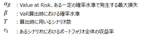 CVaRはポートフォリオ収益率の損失がαβ(VaR:Value at Risk)を上回る場合の損失の条件付期待値を表し、以下で定義される。