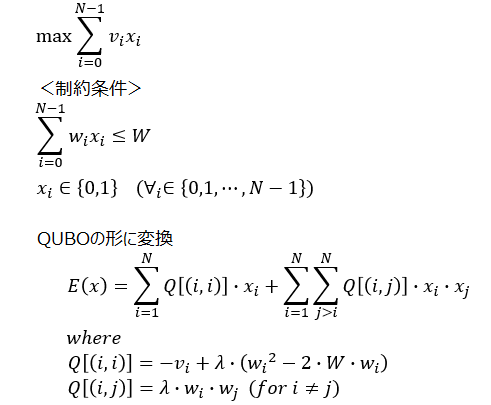 BQMで計算する場合、QUBOのエネルギー関数の形に式を変換する必要がある。