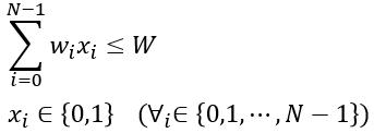 アニーリング方式の適用例として、まずは「ナップサック問題」について取り扱う。