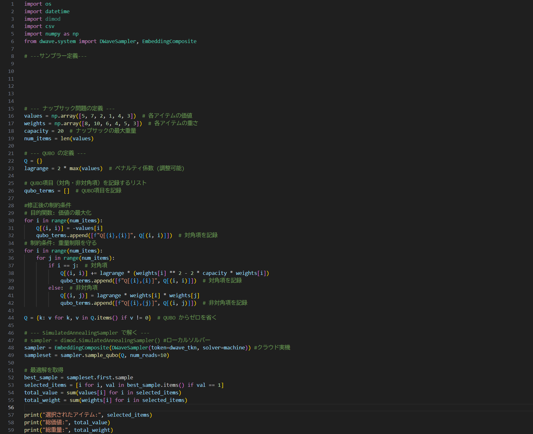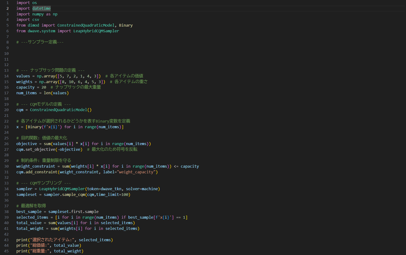実機を用いた検証では、D-Wave社のクラウドサービス「D-Wave Leap」にて、Ocean SDK を用いたプログラミングを実施した。