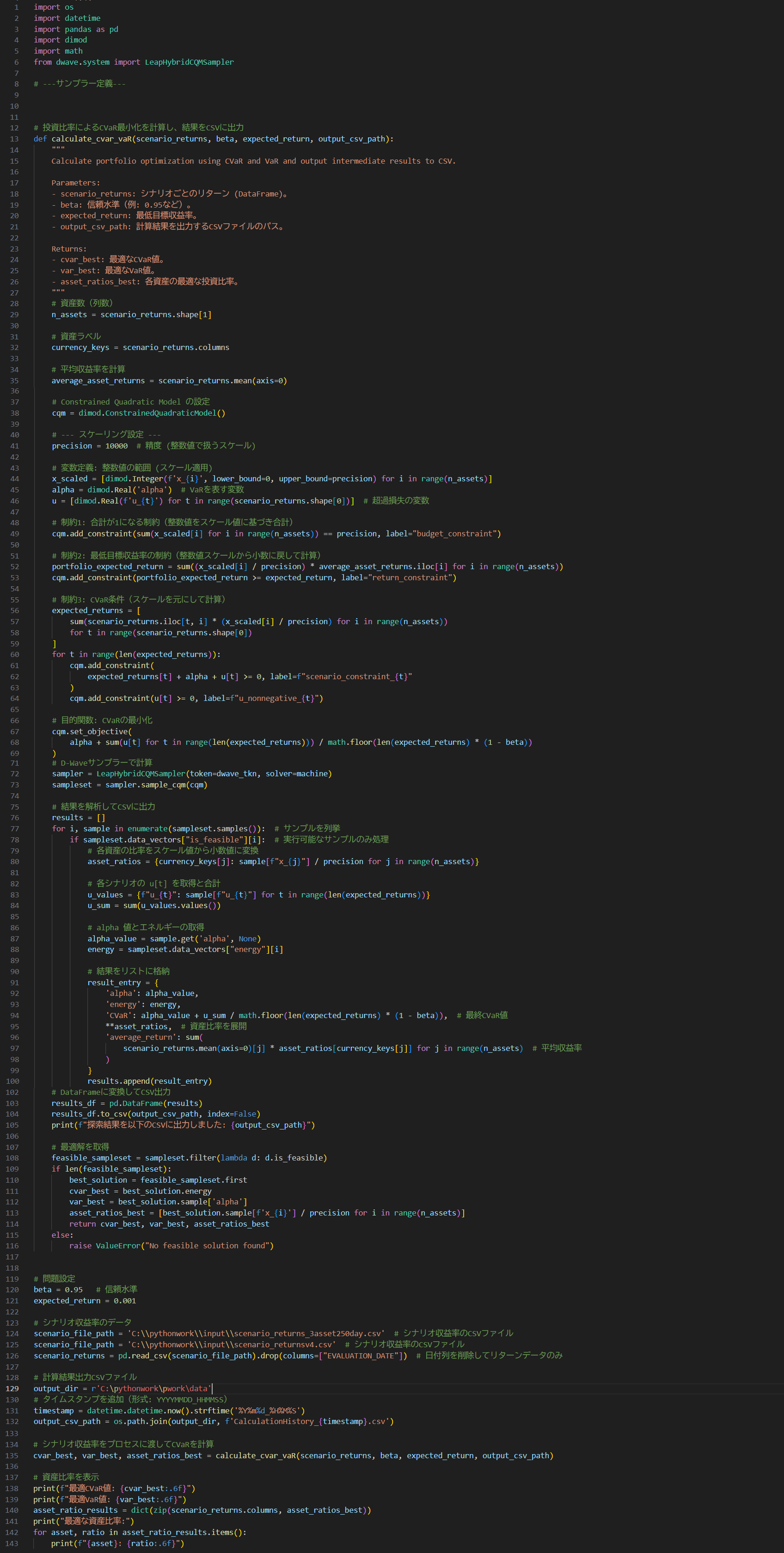 D-Wave社の提供する Hybrid Solver を用い、ポートフォリオ最適化問題について求解可能であることが確認できた。