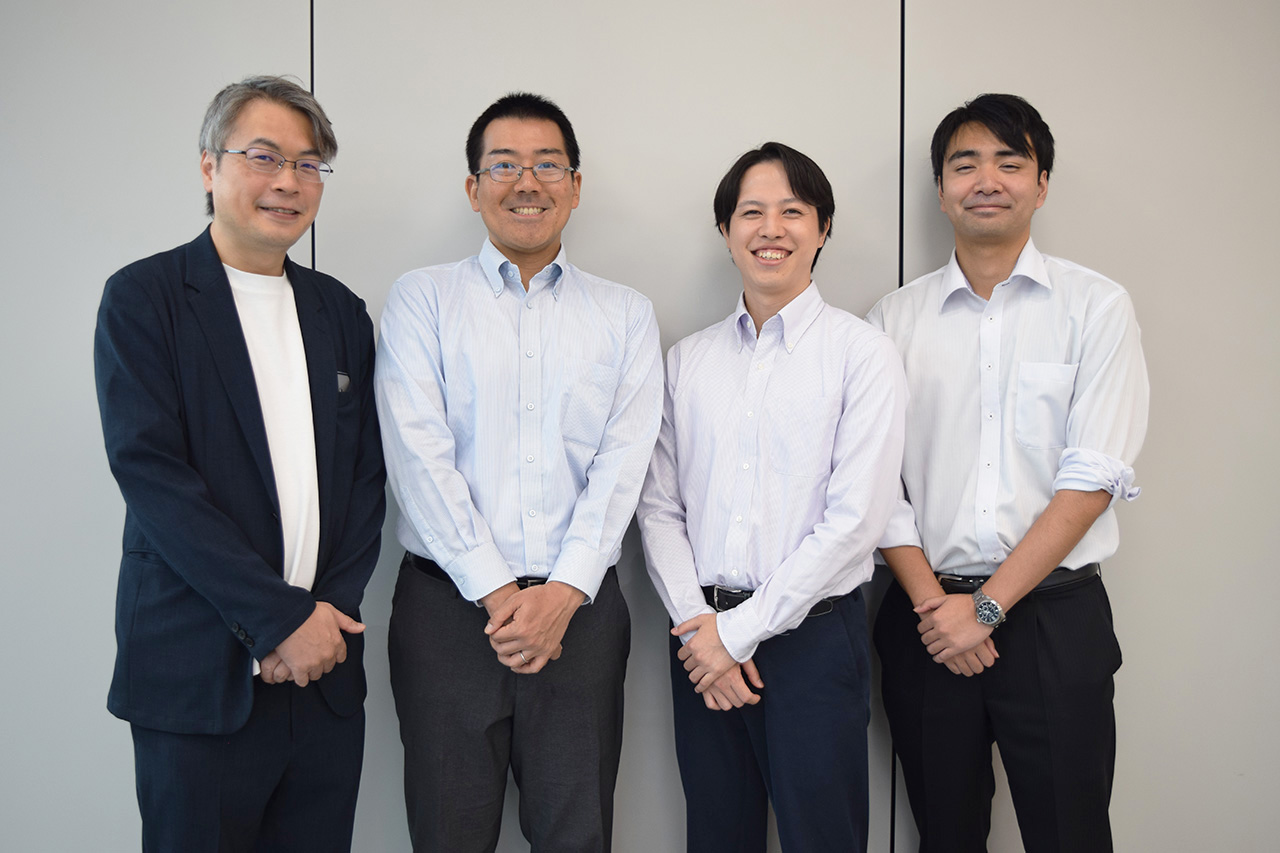 写真左から、三菱総研DCS 金融・決済部門 金融事業本部 金融開発第3部 沼田哲、野口康之(三菱総合研究所より出向)、須藤研二、金成稜平